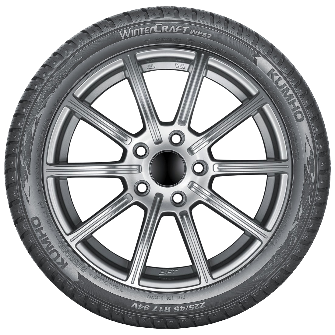 Направленный V-образный рисунок Kumho WinterCraft WP52 имеет центральное ребро и блоки, которые способствуют улучшенной управляемости и курсовой устойчивости. Продольные и поперечные канавки выводят влагу, снежную кашу, воду из пятна контакта, повышая уверенность водителя на мокром покрытии.